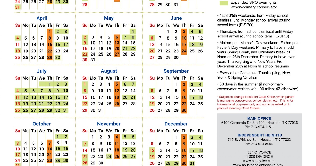Detail image for Texas Child Possession Access Schedules Tx Custody Visitation. That s okay as long as you both agree to the new schedule. 713 974 1151 independent heights 715 e. Possession Visitation Introducing the 2020 Texas Standard Possession Order calendar.